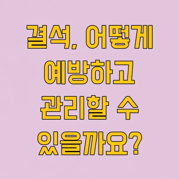 결석은 특별한 증상이 없는 경우도 많기 때문에, 정기적인 건강 검진 을 통해 조기에 발견하는 것이 중요해요. 특히 가족력이 있다면 더욱 신경 써야겠죠?