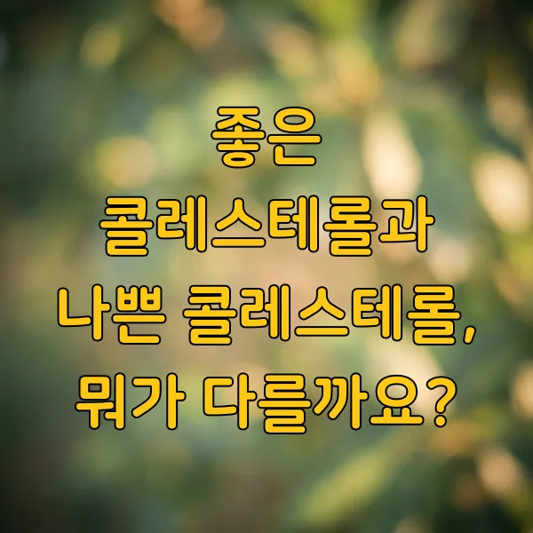 좋은 콜레스테롤 은 ‘고밀도 지단백(HDL)’이라고 불리며, 혈관 벽에 쌓인 나쁜 콜레스테롤을 간으로 옮겨 처리하는 역할을 해요. 그래서 ‘착한 콜레스테롤’이라고도 불린답니다. 반면에 나쁜 콜레스테롤 은 ‘저밀도 지단백(LDL)’이라고 하며, 혈관 벽에 쌓여 동맥경화나 심혈관 질환의 원인이 될 수 있어 ‘나쁜 콜레스테롤’이라고 부르는 거죠.