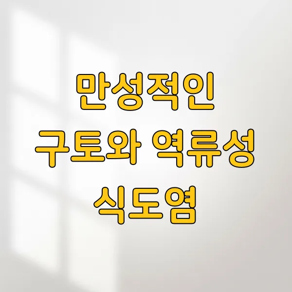계속해서 속이 더부룩하고 신물이 올라오면서 구토 증상이 나타나는 경우가 있어요. 이는 역류성 식도염 의 대표적인 증상일 수 있답니다.