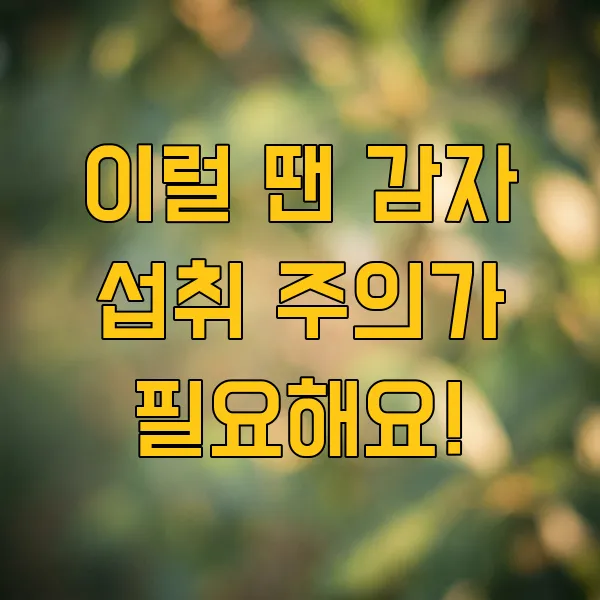 감자는 탄수화물 함량이 높은 편이라 과다 섭취 시 혈당 을 빠르게 올릴 수 있어요. 특히 당뇨병이 있으신 분들은 섭취량에 신경 쓰는 것이 중요해요. 또한, 칼륨 함량이 높아 신장 질환 이 있는 분들은 섭취 전에 전문가와 상담해보시는 것이 안전하답니다.